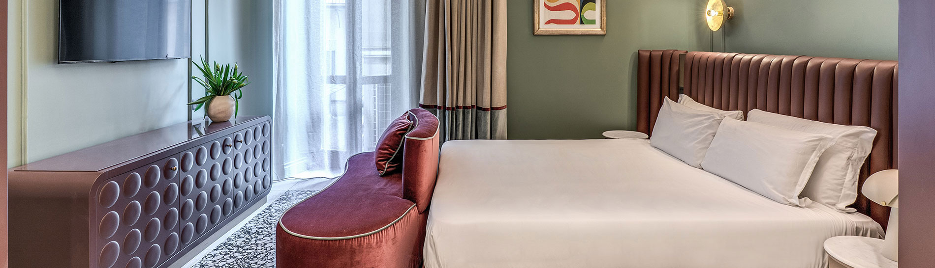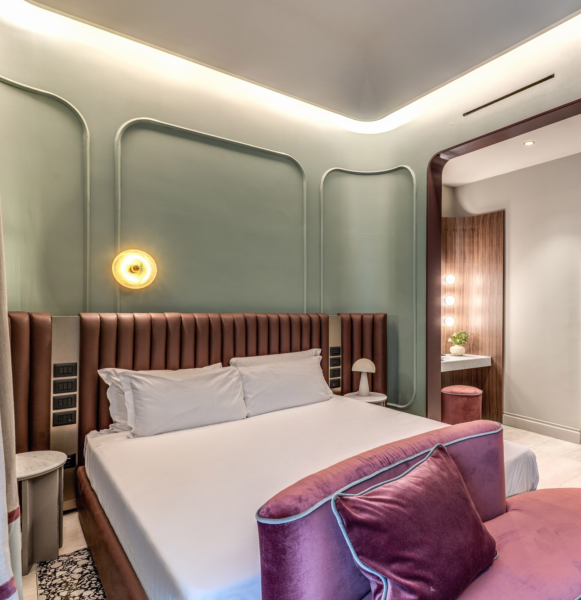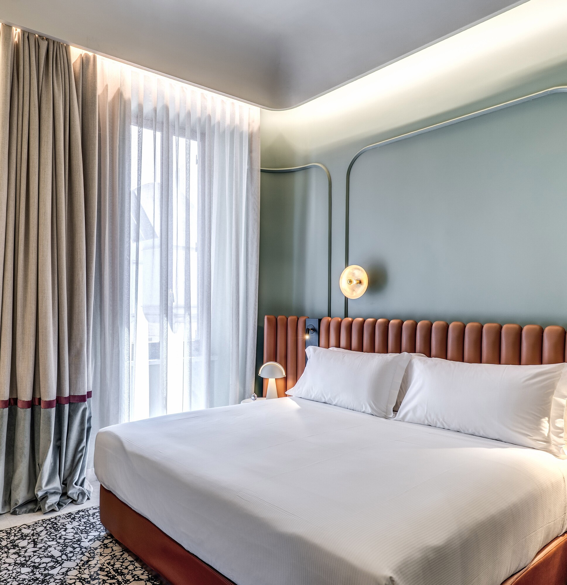 Le camere, eleganti e raffinate, sono progettate per offrire un soggiorno all'insegna del relax e della modernità. Ogni dettaglio è pensato per garantirti il massimo del comfort, mentre la nostra esclusiva terrazza solarium ti invita a rilassarti con una vista sulla città, un angolo di pace nel vivace centro di Roma.
